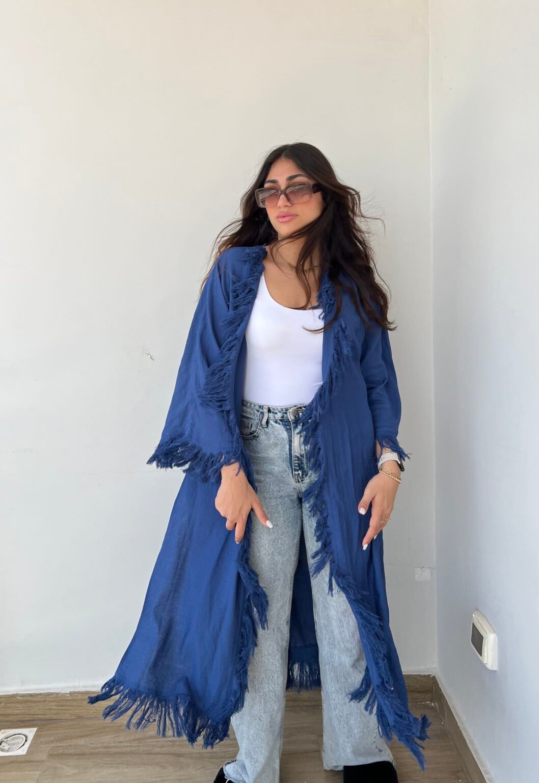 Be the first to review “Flowy Long Kimono Blue”
