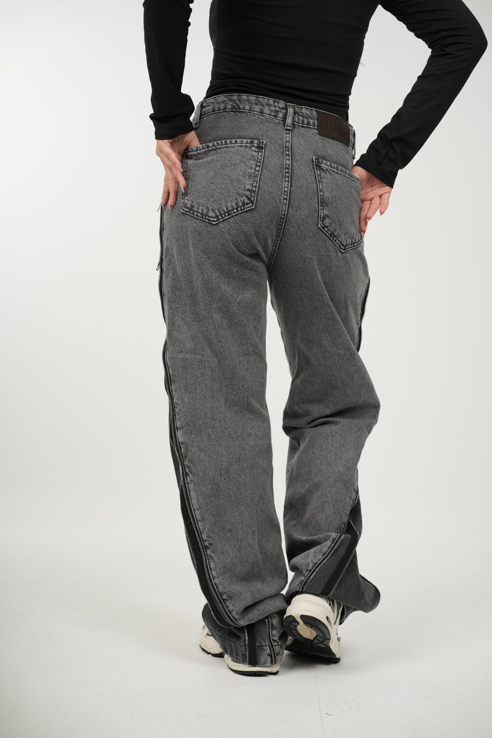 Greyish Zipper Denim